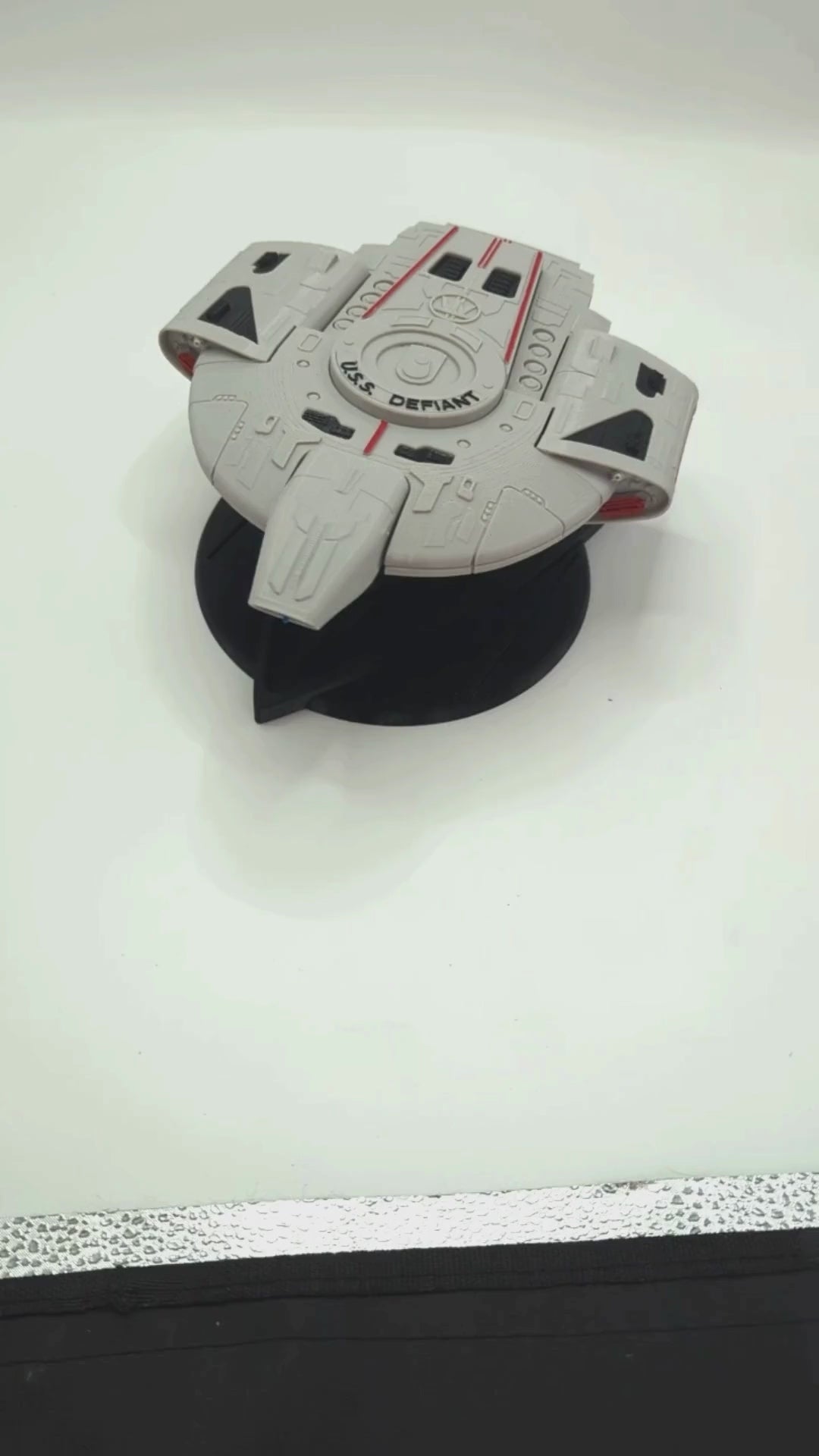 The Star Trek USS Defiant NX-74205 Fan-made replica, is a detailed collectible model inspired by the iconic spacecraft from the Deep Space Nine series. Manufactured by thenslabs in Thailand, this replica captures the essence of the Star Trek franchise's science fiction and horror genre. Manufactured in Thailand by the brand theNSLabs. This model is made from 3d Printed PETG+ plastic.